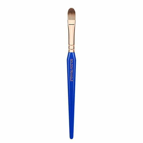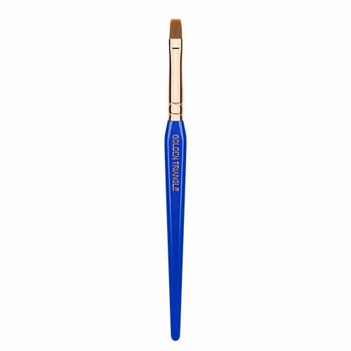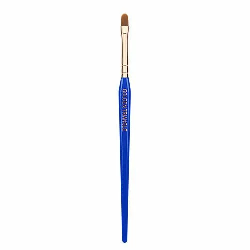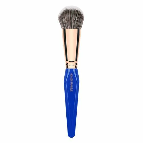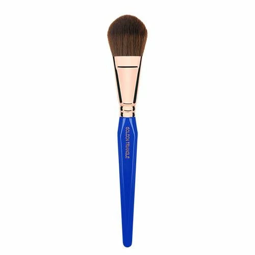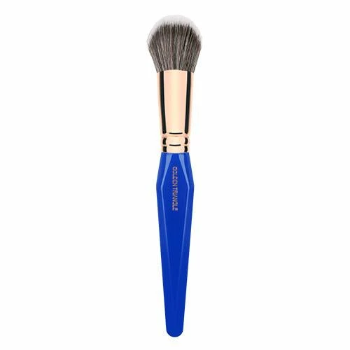 Bdellium Tools Golden Triangle Brushes for Face. Each brush is made of all-vegan soft, synthetic bristles with triangular-shaped handles. The Blue lacquered wooden brush handles are ergonomically designed to provide better control and will not roll off from the surface. 100% cruelty-free and hypoallergenic.