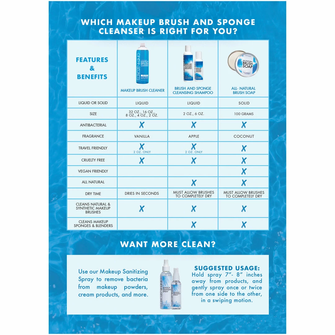 Cinema Secrets Brush Cleansing shampoo will maintain the quality of your makeup brushes. Washing your makeup brushes will prevent any makeup buildup.