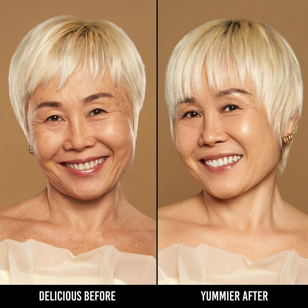 A skincare infused, radiant priming serum that hydrates, preps and protects skin for a lit from within glow. Danessa Myricks Beauty Yummy Skin Glow Serum Main Squeeze is a golden champagne perfect for any skintone.