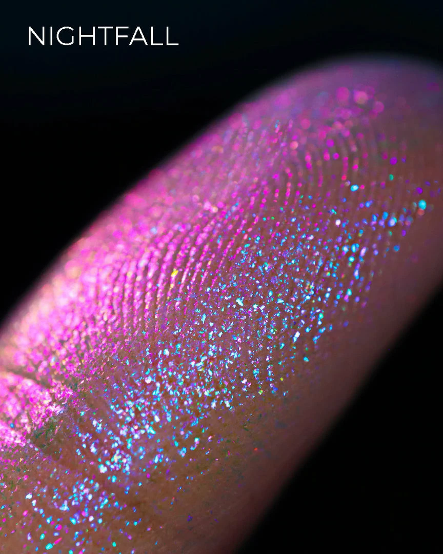 Nightfall (Sheer shimmer and sparkles> spectral colors> white>blue-indigo>violet>pink)