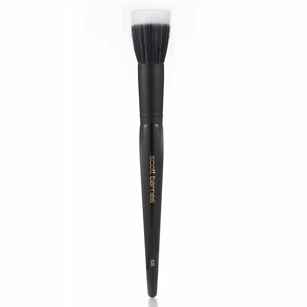 Comprised of two unique synthetic fibers, wavy and straight, this combination is the next generation of brush fiber. The flexibility found in this dual fiber brush allows the user to customize coverage; light or heavy, liquid or powder – this brush is designed with structured softness for a flawless application and finish.