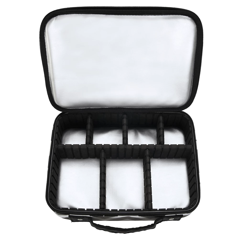 Make a statement on weekends away with the small chevron-printed Stylist Case. This cool monochrome professional case is compact yet spacious and comes with all the organization a product-lover needs. The cushioned dividers can be adjusted to cater to every need – from keeping brushes together and stowing wet wipes away to grouping similar shades and formulas in the same compartment – protecting everything inside. Finishing touches include a shiny silver, faux-leather, and a logo-printed top handle. What more could you need?