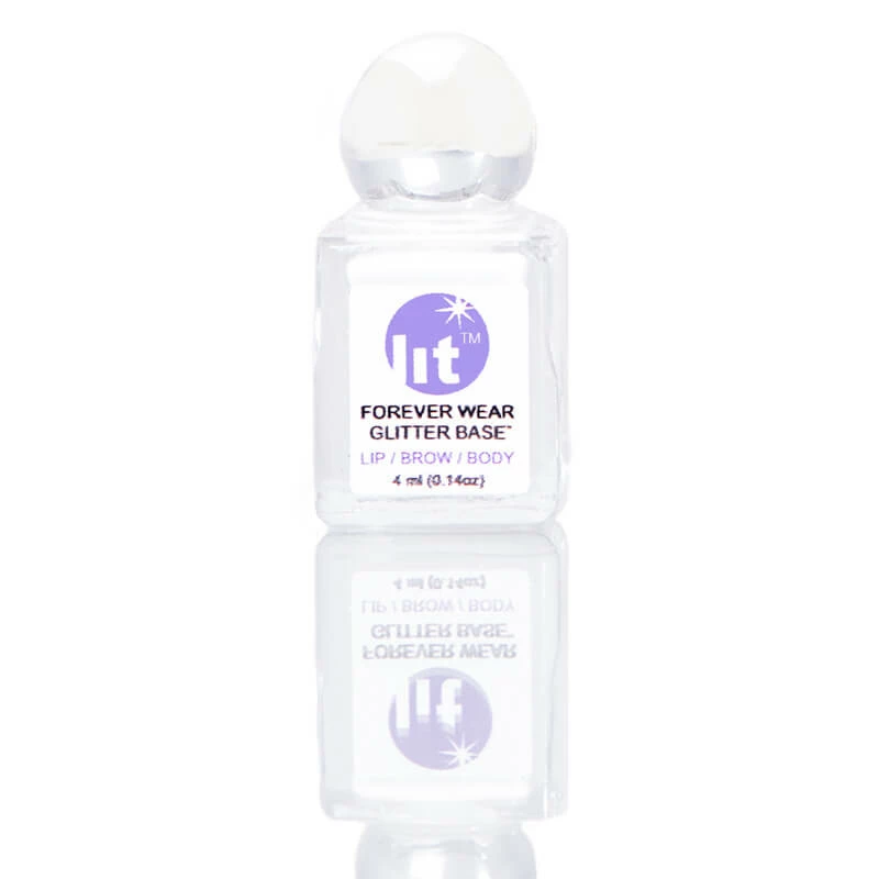 “Forever Wear” glitter base keeps all loose product adhered to any skin surface (even underwater) without dulling the sparkle. It also prevents cracking, flaking or floating, offering a comfortable all day all night hold. Dries completely.