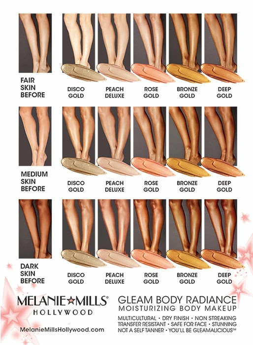 Get 3X’s the glamorous glow with Gleam on the Go, Gleam Body Radiance trio. Three gorgeous shades: luminous Rose Gold, radiant Bronze Gold, ultra-sexy Deep Gold. Choose a shade that suits today’s mood or mix them up to customize your look.