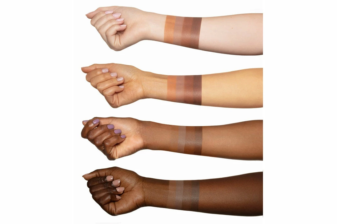 4 shades of contour and bronzer powders curated to create the illusion of natural shadows & warmth on fair to dark skin tones. A sheer, yet buildable formula that allows you to effortlessly control the intensity of your application. We included 2 warm shades that mimic a natural sun-kissed tan. Apply these warming hues where the sun would naturally graze the face. Paired with 2 contour powders with neutral undertones that mimic natural shadows on the skin. Apply these neutral shades to places where shadows naturally occur on the face or create the illusion of shadows where you want them.