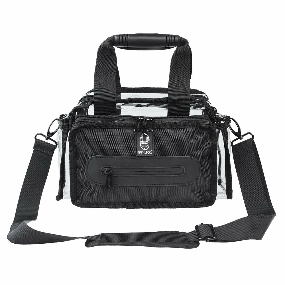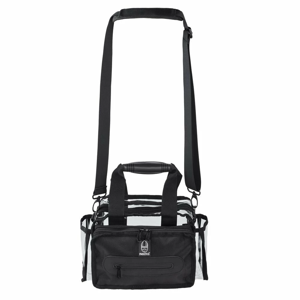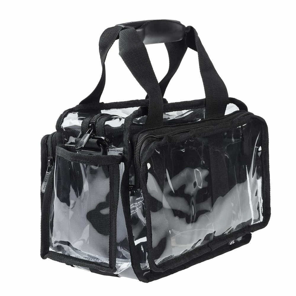 Perfect for working on set or on location this bag is spacious enough to take your makeup essentials with you but small enough to be discreet and convenient. No more crushed tissues! A separate canvas pouch fits a full standard box that easily dispenses tissues. Two clear side pockets and a central divide through the main compartment allows you to stand and separate your products as you see fit. A generous back pocket was designed to perfectly fit your makeup palettes. This bag is made with thicker premium PVC for increased strength and durability when the demand is high and includes a strong comfort grip handle and a removable, extendable shoulder strap with comfort pad to make it easy to transport.