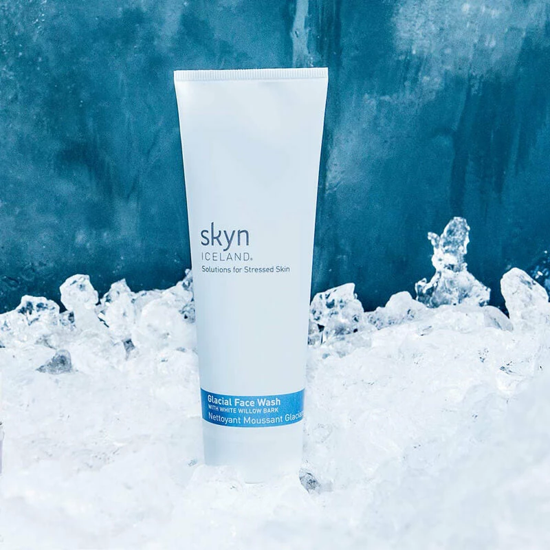 Skyn Iceland Glacial Face Wash is a creamy, foaming cleanser to refresh, soothe and purify stressed skin. Formulated with the purest Icelandic glacial waters and beneficial botanicals, this mild cleanser detoxifies and purifies without stripping skin of its natural moisture. Skin’s harmony, balance, and glow are restored.